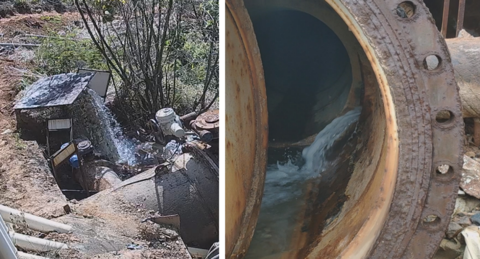圖4 2023年10月26日,督察組暗查發(fā)現(xiàn),黃砂新材料產(chǎn)業(yè)園一些生產(chǎn)廢水從雨水管排放到漁塘溪