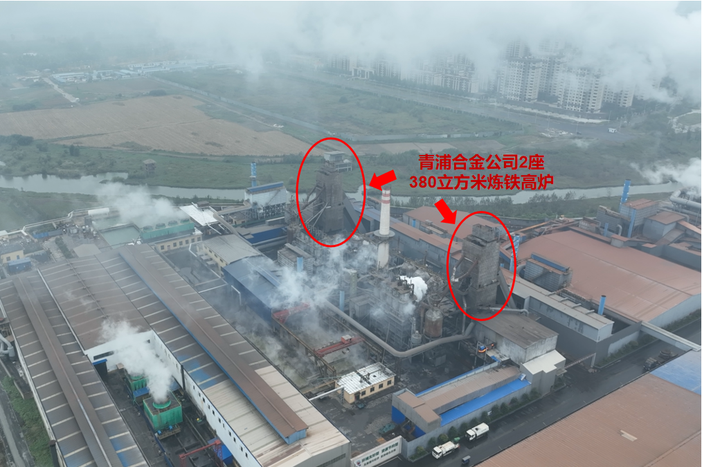 圖2 2023年11月24日,督察組現(xiàn)場督察發(fā)現(xiàn),青浦合金公司2座380立方米的煉鐵高爐正在生產(chǎn)