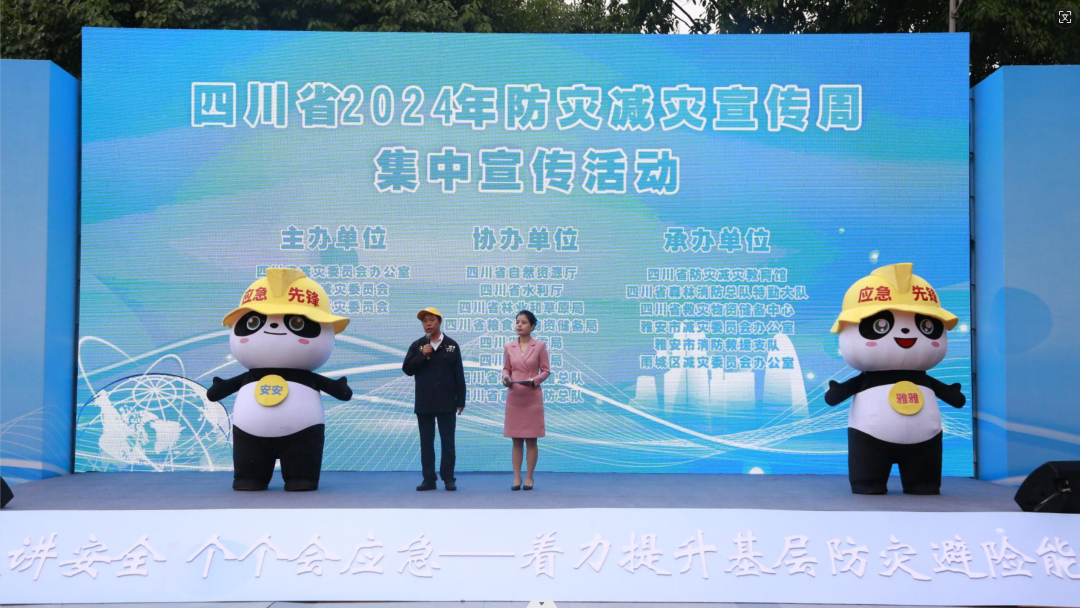 今年5月12日是第16個(gè)全國(guó)防災(zāi)減災(zāi)日,主題是“人人講安全、個(gè)個(gè)會(huì)應(yīng)急——著力提升基層防災(zāi)避險(xiǎn)能力”,5月11日至17日為防災(zāi)減災(zāi)宣傳周。為廣泛動(dòng)員全省各界深入開展“5·12”防災(zāi)減災(zāi)系列宣傳活動(dòng),全面推動(dòng)省級(jí)區(qū)域應(yīng)急救援基地和航空應(yīng)急救援基地投入實(shí)戰(zhàn)使用,5月11日,四川省應(yīng)急救援基地集中授牌暨2024年防災(zāi)減災(zāi)宣傳周啟動(dòng)儀式在雅安市舉行。此次活動(dòng)由省應(yīng)急委員會(huì)、省減災(zāi)委員會(huì)主辦,省應(yīng)急委員會(huì)辦公室、省減災(zāi)委員會(huì)辦公室和雅安市人民政府共同承辦。